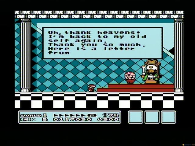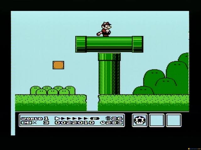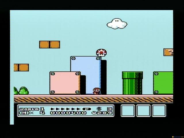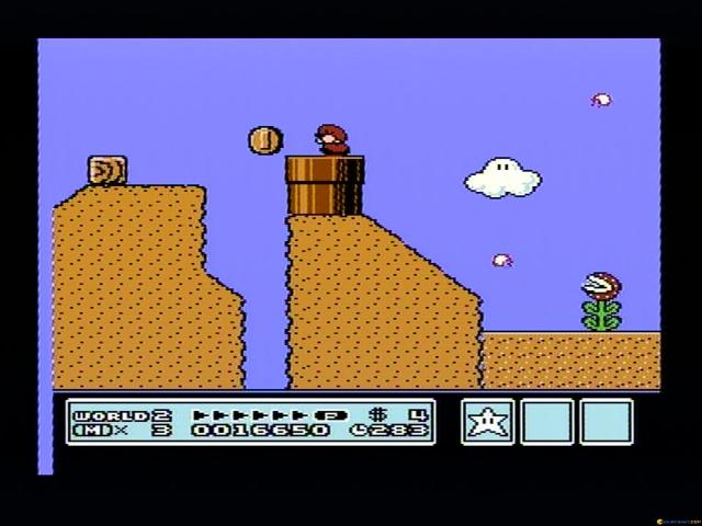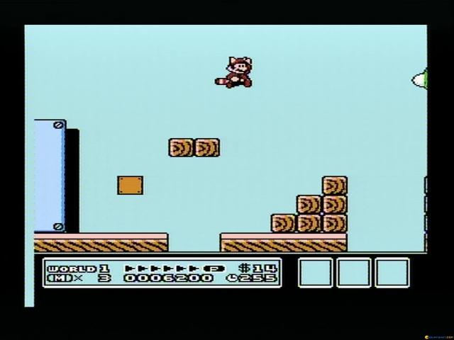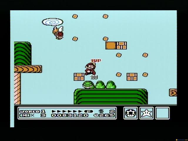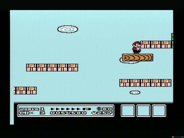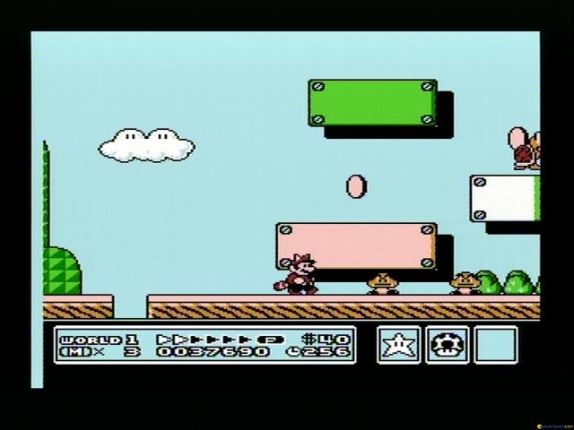SMB 3 is another great game from the series that created the nineties - Super Mario. This time, Mario and his brother Luigi are on a very hard task of saving Princess Peach that was kidnapped and held hostage by the evil Bowser and his children the Koopalings. The princess is not the only person the brothers must save - they also must save the rulers of seven other kingdoms of the realm. The two must traverse a total of eight separate regions in order to restore order to the Mushroom World. The gameplay consists of all the elements we all know from Super Mario games - juming on turtles to destroy them, bumping your hear against the ceeling to recieve coins and other powerups, and flower pots that are actually elevators. The graphics and the pretty designs are a trademark of the game - Turquoise colored skies and green bushes in contrast to the brown floor and platforms. Everybody who's ever heard about Mario and his wingman Luigi know how great this game and why the game has become a true classic. For those who don't, I suggest them to get themselves a copy this instant and prepare themselves for a world of fun.