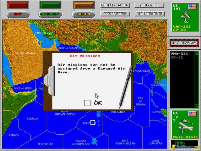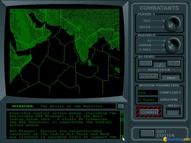 This game is an example in a good conversion of a board game to a computer one. A very good naval strategy, 5th Fleet is set on the waters of the Indian Ocean and the Mid East and enables you to combat with various opponents, such as Indians or Pakistani army. Throughout 11 scenarios of increasing difficulty, you will have hours and hours of challenging, exciting and mind boggling naval warfare with a great array of units. The game is very simple to play and all the controls are very easy to learn and master. Along the way you are presented with real time statistics and user panel which gives you a great control of your units and weapons available. The game can be played as a single player or with two other players via Email. The graphics are incredibly realistic and detailed and give you a great sense of reality and dynamics. Naval strategy lovers (like Harpoon II)will surely appreciate this game and board game enthusiasts will respect how faithfully the game has been transferred to the computer systems. Great work!