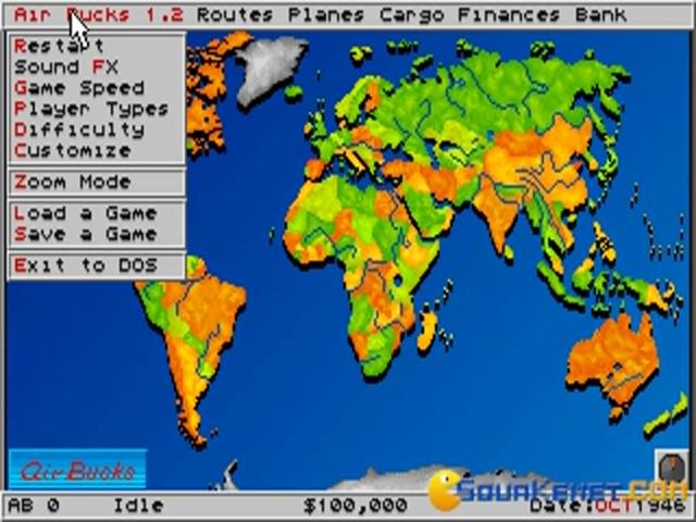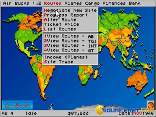Air Bucks is a 1992 airline tycoon simulator with a complex gameplay for the fans of this genre. The main aspect this game focuses on is the economics of transportation via air travel. The action takes place in the year 1947, when the WWII has lasted. From this moment the historical element presents the assured freedom and more possibilities available after this tragic event. Some examples are: new air vessels are available, the market develops, decreasing the humanity's efforts to achieve money. You are tested from the beginning of the game to build your fleet, design global routes, obtain the rights to land, bring changes in the plane operations and to lead economic trades in different cities around the world. The competition won't miss, as in all simulators this aspect is present, to offer a more invigorating action, making you more motivated and interested. Of course the gameplay is created as to bring fun among the fans of this genre, and not only them,because the financial aspect is not the main thing you can concentrate on. You can work and at the same time you can have an exciting and fun experience! Even if the game is quite old, the 2D graphics succeed to satisfy your eyes and perception upon your business!