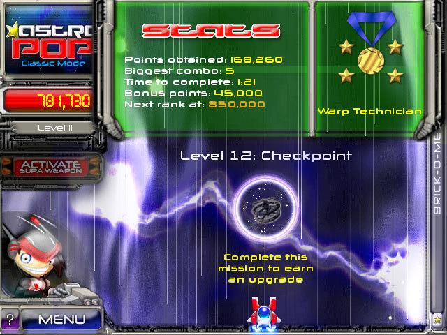 A strange but highly addictive mix of Arkanoid and Tetris, AstroPop Deluxe is a delightful little gem which is well worth adding to the collection of any puzzle/arcade fan. It combines fast-paced gameplay with charmingly colorful visuals and clever mechanics to create a proper little treat. The idea here is that you are in control of a cute little spaceship that can shoot and stack bricks. As you play, the screen fills up with bricks so it's your task to pop bricks of matching colors in order to clear the screen and which allows you to continue while racking up the points. If you link up four colors you can create chain reactions to spectacular effect while there are also special powerups to help you out. These include the likes of freeze bombs, radial bombs, nukes, and even obstacles which will hinder your efforts. There are four characters to play as, each of which has their own unique special weapon while there are also two main modes to play through. One allows use of weapons with upgrades, while the other is a survival mode where you must last as long as possible. AstroPop really is a delightful offering in the color matching genre. It's similar in concept to others of its ilk but it's also suitably different to make it feel at least a little bit different. The core idea is easy to pick up but cleverly implemented and there's no denying this is highly addictive stuff. The addition of the weapons and other powerups is a neat one and which help to make this a cracking little puzzler.