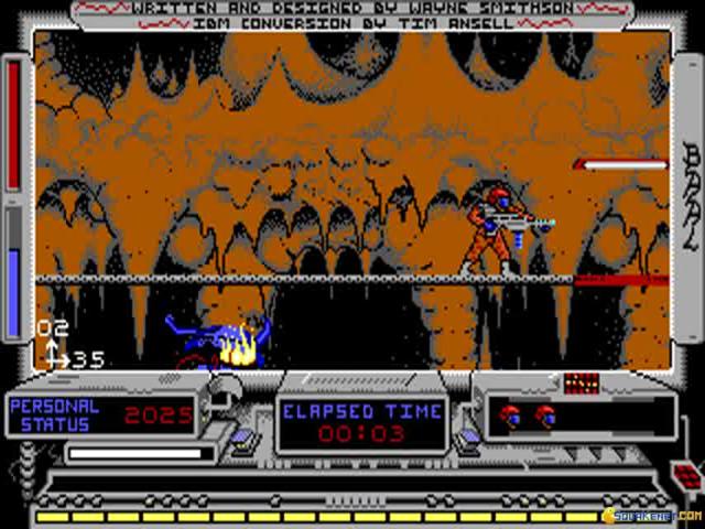 In this game you belong to a gang of Time Warriors! Time Warriors! Wow! Well, should you accept their challenge, you're going to have to take to the streets and try and locate Baal, the demon. What is the connection between Time Warriors and demonic spawns? Not much of a connection, to be quite frank, but, nevertheless, it puts quite a nice fascia of story in there, and by nice I mean, lame! But that doesn't matter! What matters is that you will be sidescrolling left and right style, at times laddering up and down as you see fit, to gain a vantage point on your unassuming enemies, and just shooting, while rarely having to dodge. No, this is no Contra, not at all, this is an alright sidescroller, with military overtones, but nowhere near as involving as the olde faithful! Anyways, play it, it's a game that offers a few tens of minutes of fun, and who knows, it might even click with you and have you enticed to see it to completion. Don't come wanting a lot though, it is not the game to hide too much inside!