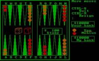 Backgammon (IBM, 1984) is a cool digitization of the tabletop game that we're all used to, and, for an 84 title it is fairly well polished and with enough detail in the graphics to not offer you any issues. The table looks good enough, and the colors are chosen well, with green shades and black, which are very good for longer play sessions. Also, what the game also provides in a good fashion is different adversaries, so that you can play at different difficulty levels. You also get the usual additions, such as taking back a move, or getting a hint as well as well as a save function. Very well done, functional, and well produced, with overall great graphics and a pretty cool sounds. A good, more modern version, for those that want a bit more pixels in their games is Backgammon Professional, with a bit more graphical oomph, yet none can say that Backgammon from IBM can't stay it's ground: it's playable, versatile enough and more than expected for a game of its age! Download them both, they're both great.