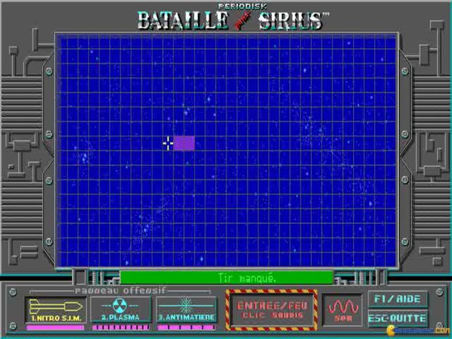 Bataille pour Sirius is a French game, a strategy in built, but you could also describe it as a shooter game in space with a meaty warship editing and some other strategic tidbits introduced in there, all of them pretty amazing, interesting to play with and always exciting. So, the game gives you this map, that is cut into squares and it allows you to build your own ships and to controls them around, edit their capabilities and more. It's fun to play, interesting to fiddle with, but not a very long, or a very surprising game. It basically will appeal to those that love space shooters that love their games to have some neat extras that actually impact the central core gameplay. Graphically, Bataille pour Sirius is alri9ght also, it looks its age, having been deployed (sic!) in 92 and for the most part it does a great job of it all. So, overall, the game is playable, well organized and it keeps you entertained, while also allowing you to get it to work even if you don't' know French. It's almost like a more meaty arcader, so I'd say you won't have any issues finding your way around the menus. Else, download Star Control, for a more well organized game, of the same kind and build.