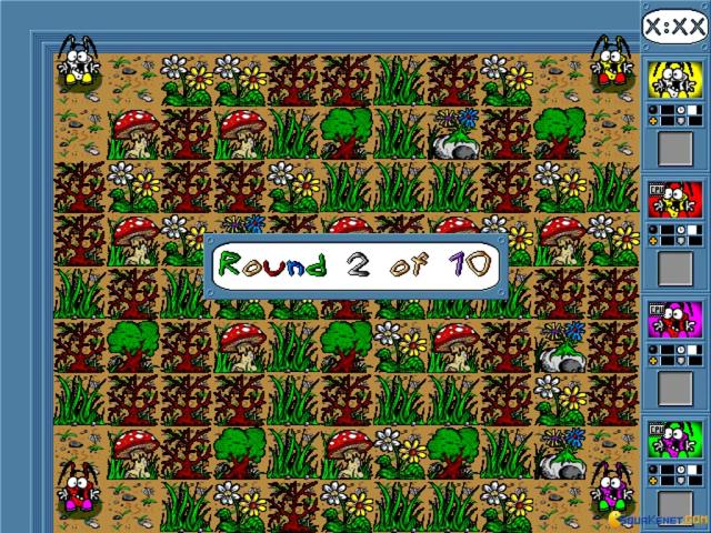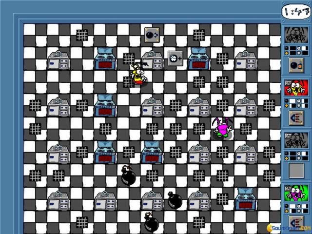 In Bombs and Bugs you will be playing inside an ant colony, or something of the kind, only that there are planets and stars in the background and, well, some other graphical elements that don't seem to belong there. But, then again, in the realm of this game, it all makes sense, and they all feel like home, in all this weirdness that the game offers you. At any rate, as long as you play it as a sort of Bomberman or Dyna, in a graphical expression that is a bit more over the top and psychedelic than these other two managed, you'll be alright. You will also get into it because it's rather fast and because it has lots of wacky ways to entertain you, from the sounds and music to the diverse upgrades you can collect and so on. All in all, it's a great example of that maze action with bombs with the same strategic and tactical/puzzly feel that makes these games work great, in small independent chunks or for longer periods of time, depending on how you want to approach them. At any rate, there are bombs, there are bugs and mazes, and sometimes a man (and woman) needs that, you know! :P
