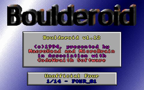 It's time for another slice of knock-off heaven with this unoriginal but strangely addictive clone of the classic arcade/action/puzzle game Boulderdash. This one doesn't exactly add anything new to the original concept but manages to be fun and exciting nonetheless so if you have a hankering for some more of the same, you should have a good time here. The game follows pretty much exactly the same template as the ground-breaking original with the player exploring a series of complex cave-like levels which are packed with obstacles and treasure. The goal is simply to grab all the treasure on each level, which opens up the exit which must then be reached before the next similar level can be attempted. Standing between the player and untold riches however, are numerous boulders which are the principal obstacle to be overcome. By removing the sandy patches which also take up much of each level, the rocks tumble dangerously downwards, requiring fast reactions and quick thinking in order to avoid and survive. Boulderoid really isn't original but it manages to overcome this fact by simply being well done. It's not quite as fluid as its inspiration but the controls are well implemented, making it a breeze to control. Moreover, the levels on display here are generally well designed and provide plenty of challenge for genre veterans. As with the original, much of the enjoyment here comes from the fact that you can play the game how you want to, either taking your time to plan out your moves or just going hell-for-leather and hoping it all works out. When you throw in the cool and chunky visuals, you're left with a highly enjoyable clone of a classic.
