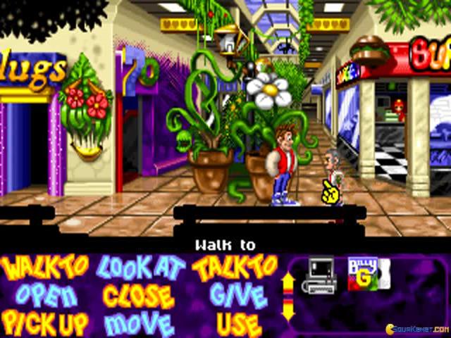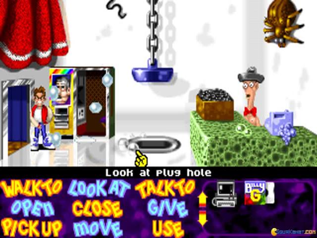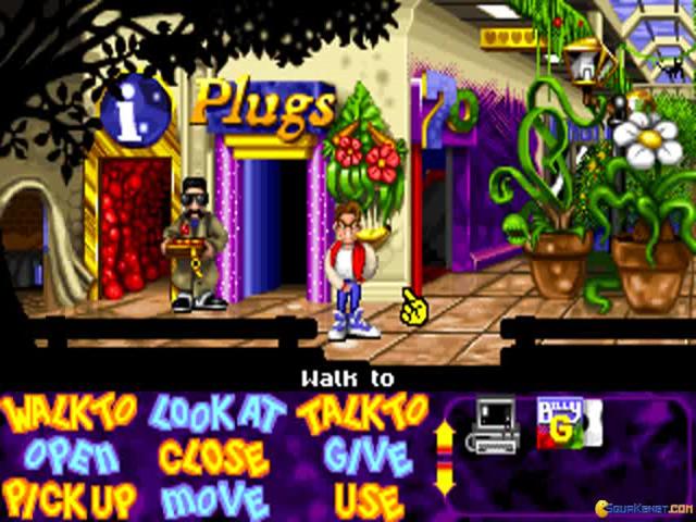 Bud Tucker in Double Trouble is a wacky cartoony adventure game that involves lots of puzzle-solving tasks. You play as Bud Tucker, that is a pizza delivery boy during the day and a lab assistant at nights. His professor was abducted by an evil and lunatic boy named Dick Tate, and it's his job now to save him, and to stop Tate cloning a billion versions of himself to populate the world. This 1992 point & click adventure involves a lot of exploration in a town called Barryville. Throughout the game, you will pick up, use items and perform other actions that are shown in words (the verbs are in the form of images) or icons on the screen. You will find the dialogues full of humor, and also, some bizarre and crazy elements that will raise your interest for the game. It's well elaborated, that brings an enjoyable soundtrack, a catchy introduction that will trick you into thinking you are watching a genuine cartoon, great animations and detailed environments. For those that are used to carry many things in their inventory for an extra comfort, this game will annoy you a bit from this point of view: the inventory won't allow you to hold more than three items.Leaving this behind, if you want a cartoony and funny experience, you should definitely try Bud Tucker in Double Trouble!
