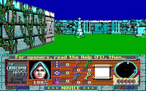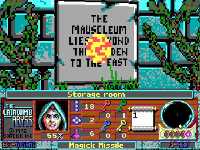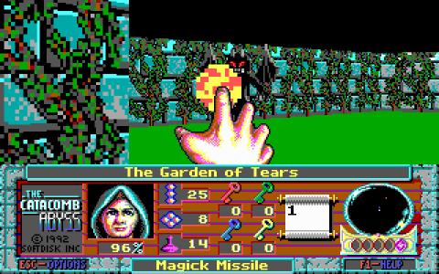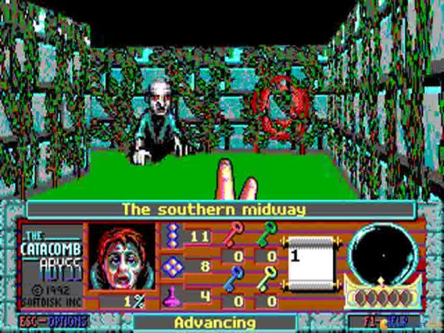 The Catacomb series, which includes Curse of the Catacombs and Terror of the Catacombs, is a set of first-person shooters that are notable for being developed from the original Catacomb which was designed by John Cormack, of Doom, Commander Keen and Wolfenstein fame. This is the fourth game in the series and plays out in similar fashion to the prequels and sequels but which remains an enjoyable enough entry. The game is a sort of cross between Gauntlet and Doom, with a fantasy style that sees the player taking the role of a magician who makes use of fireballs and spells rather than hi-tech weaponry. You are once again on the trail of the evil Nemesis and must free the townspeople from his reign of terror, which basically means venturing into a series of dungeons and blasting his minions into dust. Changes to the formula this time around include new environments which see you exploring areas beyond the previous games dungeons, including gardens, volcanoes and mines, and new enemies with some distinctive behaviour. The addition of a radar is also a neat touch and which requires the player to discover specific gems in order to reveal different kinds of monsters. Catacomb Abyss is a solid entry into the series, offering a few changes to the basic gameplay but nothing revolutionary. The combat remains fast, furious and uncomplicated and there are plenty of thrilling moments to be experienced. The graphics are decent enough in that old-school fashion, with big, bold sprites and varied environments which present plenty of opportunities for exploration. If you're looking for an enjoyable shooter then this certainly delivers, but its lack of depth and variety soon become obvious and its appeal wanes quickly.