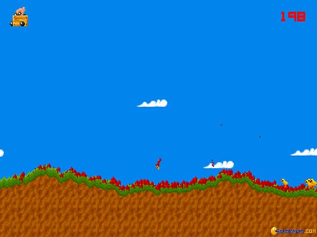 This game, released in 96, seems to be a spoof of Duck Hunt, the infamous duck hunting game for the Nintendo Entertainment system. However, while in that one at least some of the ducks had a chance, as you could run out of bullets or simply not shoot straight, Chickens offers you bombs in order to massacre them! Sure, it has that lighthearted look of the NES classic, but it still can be a little disturbing! Anyway, you have to throw bombs and the more chickens you catch in the blast, the better – you basically get more points. Each new level brings forth new chickens, and more of them and a limited number of bombs. As I said, the graphics emulate the NES 8bit looks so you can't expect too much detail, yet you can't complain that you can't see the chickens or anything; you've got all you need! Also, you control your aim via your mouse, so no extras are needed! So, if you want to be a cruel chicken slayer, this is the perfect game to do it with! Give it a try only if you harbor animosity towards chickens!
