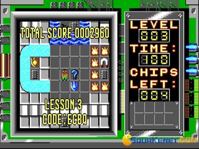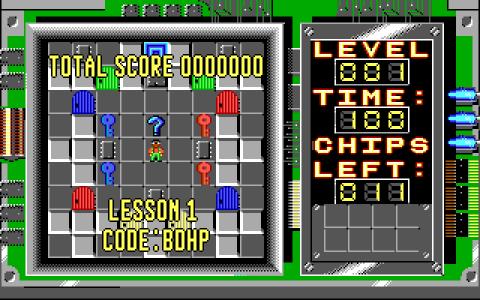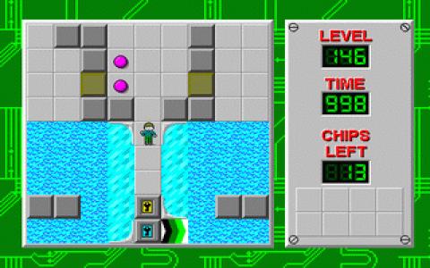 For those moments when you need a quick fix of head scratching, brain teasing fun, Chip's Challenge is the perfect solution to your woes. It combines a surprisingly touching story which many gamers can probably relate to, with an extensive line-up of cunning puzzles to create an enjoyable experience that is well worth picking up. The story relates how a loveable geek, Chip wants to join the local computer club, which just happens to be run by the cute Melinda. Before he can join though, he must prove his worth by completing 150 or so puzzles which will show he's got what it takes to join the ranks of the Bit Busters. The puzzles are many and varied, but are all tile-based, requiring Chip to manipulate switches, make clever use of blocks, shoes and tools to create bridges or avoid obstacles and other such tasks in order to reach each level's exit. It's the sheer variety of tasks on display here that makes the game such a winner and each level will really test your lateral thinking skills as well as your reactions, making this a great game when you need an all-over mental workout. The graphics really aren't anything to write home about, being very basic and lacking in any kind of detail but that isn't a problem as it is the core gameplay that is the draw here and pretty much every aspect in this respect is spot on. The puzzles are challenging enough but if you do complete them all, then the game still has plenty of replay value as there is lots of inventive to go back and beat your best score or time. This really is a delightful and addictive little gem that is well worth a look.