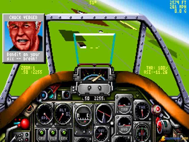 Chuck Yeager was a very famous pilot back in the early 1990s and his help with this game meant quite a lot for the degree of realism that this simulation offers. Therefore, the game was an ace flight sim, the most prominent feature being its very well balanced action gameplay, which combined fast paced arcade style play with a more mature approach to the physical model of the game. The game features 6 different planes. Therefore, this is a modern flight sim, featuring airplanes that were the epitome of US airpower at the time. The game's missions will see you through all ranges of dog fight styled action sequences to other scenarios inspired by real facts. You therefore have a large amount of choice when it comes to the gameplay you want to test and the game will take a while until it becomes boring. As with most air sims or arcade/sim combinations, this too plays best when controlled with a serious joystick, but it remains playable with keyboard only as well, though it takes away much of the edge.