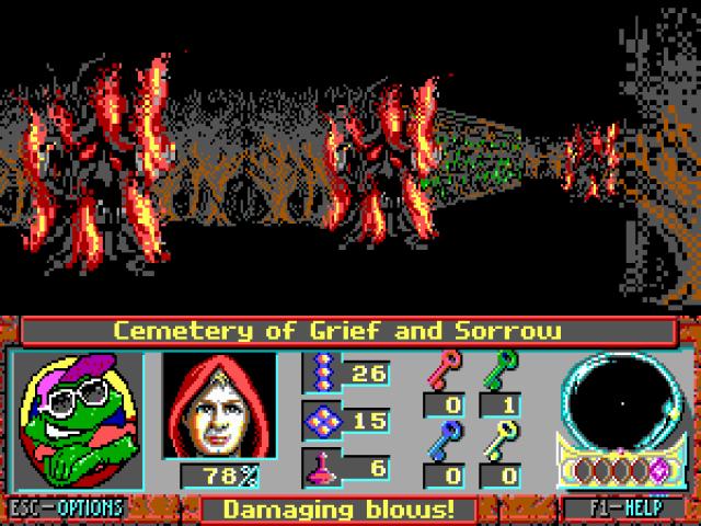 This is part of a long series of similarly themed shooters that includes the likes of Catacomb Abyss and Terror of the Catacombs and continues the franchise's story of a lone mage out to destroy the evil Nemesis who has the usual plans for world domination. The games are all pretty similar and bear more than a passing resemblance to the likes of Doom and Wolfenstein and this should come as no surprise as they have their origins in a much earlier game which was developed by John Carmack of iD Software fame. This one is a fairly standard first person shooter that mixes in RPG and Gauntlet-style elements and which sees players exploring a vast series of dungeons and other such environments in your epic quest. However, rather than using the standard array of high-powered guns to help you out, here your tools of the trade are fireballs and other spells. You will face a variety of enemies, including seemingly harmless animals which transform before your eyes into ravenous beast, along with zombies and vicious trees. While Curse of the Catacombs is not overly original, it does provide a few neat twists on the genre to make it appealing to fans of old-school shooters. The fantasy style is well used, with the magic making a refreshing change from shotguns and rocket launchers and while the environments can be a bit sparse, the enemies are quite well designed and there is certainly a lot of exploring to be done. Sound is minimal and slightly annoying but if you can get past this niggle, there is some fun to be had here.