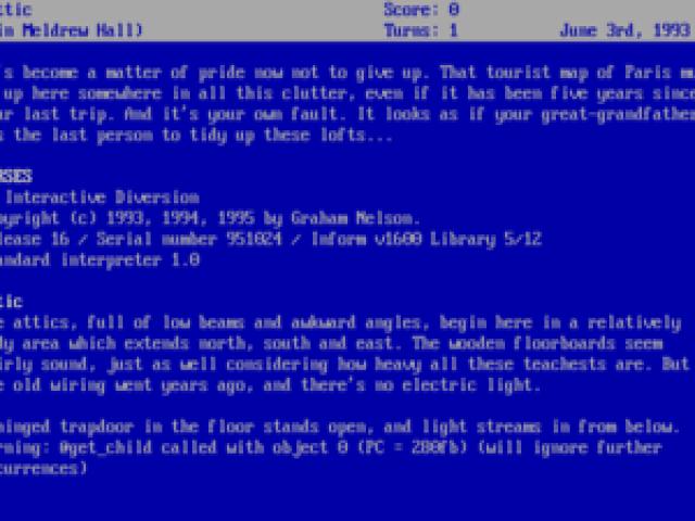 Anyone in the mood for a bit of challenging but supremely entertaining interactive fiction, like the Zork series or The Mist, should seriously consider checking out this bit of homebrew fun. The game starts out pretty simply, setting the player on an apparently banal quest through the streets of Paris but it quickly turns into something a whole lot more engaging and intriguing. To discuss too much of the plot here would be to spoil the game's appeal but suffice it to say that it's extremely well written, with plenty of twists and turns that will keep you guessing until the end and is laced with a healthy does of imagination and originality. The descriptions and characters are similarly impressive, with evocative imagery that really brings this bizarre world to life and people that will linger in your mind for some time after you've finished the game, making this easily on a par with the best in the genre. The other main aspect of text adventures is their puzzles and in this respect too, Curses doesn't disappoint. There are plenty of them and they are all generally extremely satisfying to solve, providing a genuine sense of achievement when completed. They are however highly challenging, and may even put off newcomers to this sort of thing but if you are an old-hand, you shouldn't find this off-putting. The parser system too is easy to use but intelligent so if you are used to the best of the Infocom games, then you should be right at home here and all in all, this makes for top notch interactive fiction.