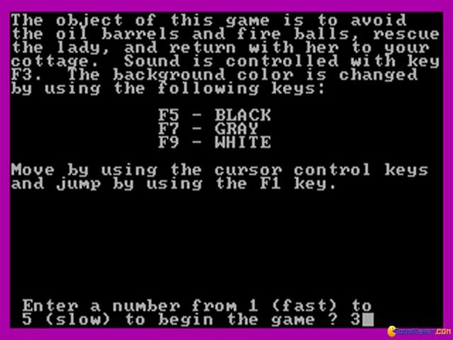 Davids Kong is a remake of Kong, the arcade classic where you used to guide Mario towards princess Peach, trying to avoid the barrels, and the other dangers, while escalating the scaffolding towards your goal. Well, this DOS creation follows the exact same recipe, and, overall, it does a good job if it. But you have to realize this is not a commercial release; it's a freeware title that was produced just so that the developer could see if he could recreate the classic. Thus, the graphics are less interesting than the ones of the original, the colors are rather poor also, with green for the scaffolds and with a shade of brown that is rather unimpressive, to say it as diplomatically as I can! But, the game works, and the hurdles you have to overcome are definitely well executed; thus the game is still time oriented , for the most part, and so, it creates a rather interesting experience, especially for those that love classic gaming, retro gaming, and are not too interested in the way the game looks like. So, if you'd like to see how hard it can be to create even the most seemingly simple arcade 2D title, take a look at this one! It's the perfect example!