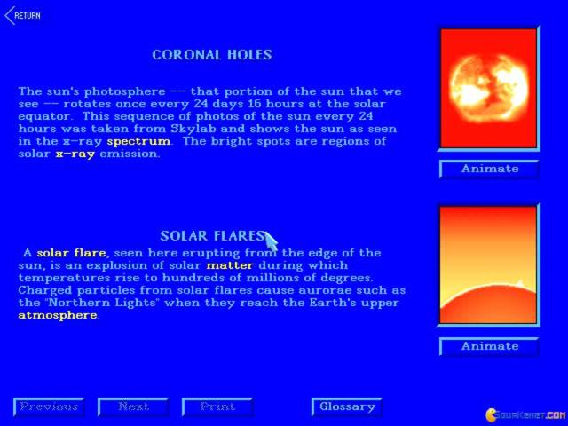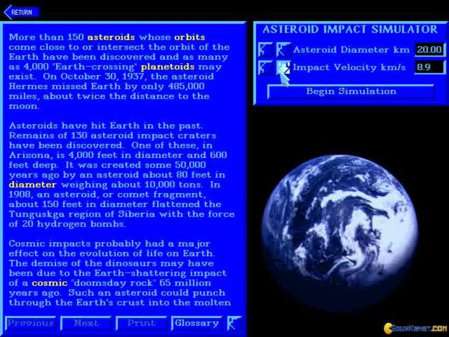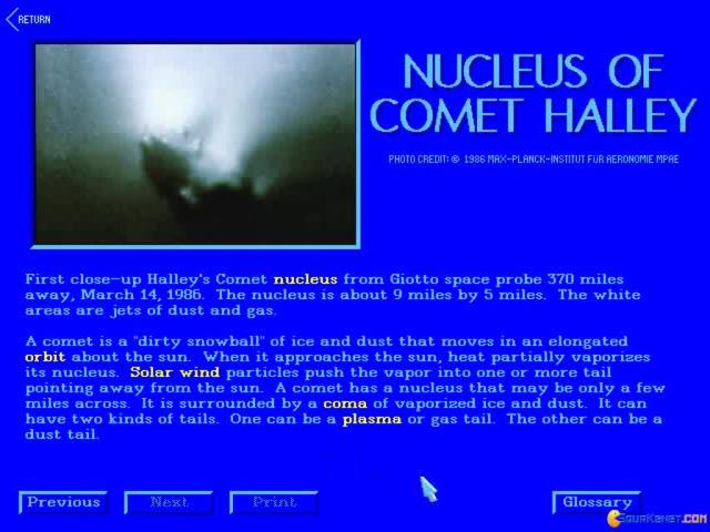While not exactly a game in the strictest sense of the word, Discover Space remains a fascinating excursion into the realm of outer space and which does so in a fashion not typically employed in entertainment titles. Instead of being an actual game, it's more of an edutainment title, which is not surprising considering it comes from the same studio that brought you the legendary Carmen Sandiego series. Discover Space is more of a computerised version of a highly powerful telescope, which lets you view the night skies from the comfort and warmth of your living room, rather than standing outside in a freezing field trying to figure out exactly what it is you are looking at. The title is similar to the likes of Red Shift but is more aimed at younger audiences, as the interface is simpler and more straightforward than usual. That's not to say the whole thing is lacking in depth or value though, and there's plenty of background info, such as myths about the origins of the planets and constellation, as well as detailed and accurate star maps. If you are looking to get into astronomy, or have kids that want to do so, this is a great little package. The visuals are nicely detailed and certainly atmospheric, bringing the mysteries of outer space to life in great fashion. The information that is presented is well written and fascinating, with the right mix of facts and fun, while exploring the software is a breeze thanks to the interface, so if you want to start exploring the stars as a family, then this is the way to go.