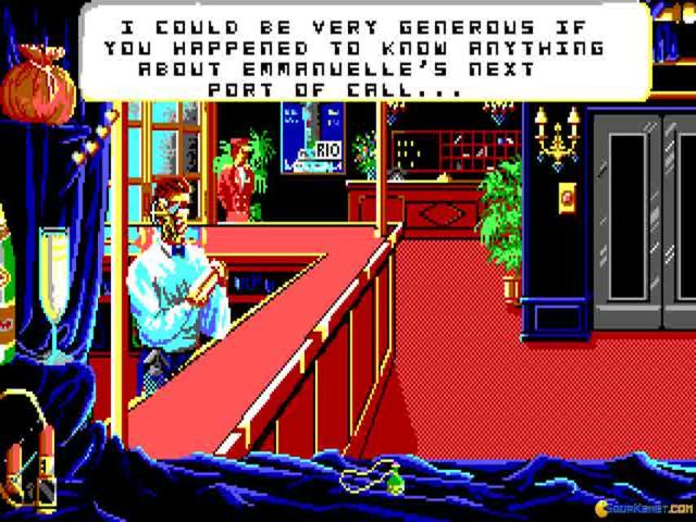 Although it doesn't seem to bear any link to the classic Emmanuelle erotic TV series, this game is nevertheless an erotic adventure game. You will be playing a guy named Coktel who's on vacation and is trying to flirt his way into the pants of a private island's beautiful women. Interestingly enough the game seems to take itself a little more seriously than a series like Leisure Suit Larry, but nevertheless, the character is searching for the same kind of thing as Larry. At any rate the game plays mainly as a classic adventure game. You point and click, have to parse through dialogue options and choose the option you deem most suitable for any give situations and even solve a number of puzzles. When it comes to actual sex scenes the game suddenly turns shy. These encounters are not graphical, but rather expressed symbolically through a numerical and symbolic system. But the main titillating attribute of the game is the interesting and sometimes old school feel of the dialogues, with the sexual innuendos and the expression that feel so dated now. So I would recommend this game just to have a taste of the history of erotic games. This one sure is a good example of the late 80s state of erotic PC games.