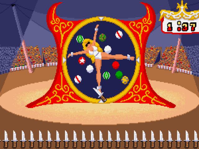 Big Top o' Fun is a compilation of circus themed mini-games developed by Gray Matter. While other packs, like Microsoft Entertainment Pack, included individual games, this game is made of only mini-games, with a little story thrown in. The story is that a greedy company is about to shut down and buy the circus and unless you, the player, will be able to raise around 10.000 dollars to save the circus. In order to do this, you need to impress the judges in the different circus events. The bigger impression you make the more money you receive. During these sections, there is a clown that will always come and try to ruin your acts. Fortunately, the mini-games are not hard and are quite fun. The sad part is that the game is really short and you can beat in a matter of minutes. But, the length of the game can be longer if you find up to 4 more friends to play and see who get the most ammount of money. The graphics in the game are cartoony and includes some humour, but the music sounds terrible. You're better off playing this game on mute. Overall, Fiendish Freddy's Big Top'o'Fun is a fun series of mini-games and I'd recommned it to everybody.