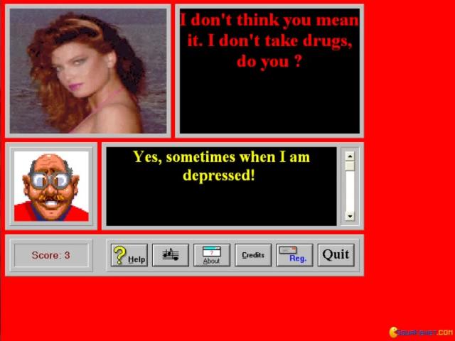 So, you go out, have something to drink, see a smoking hot girl. Feeling frisky, you think about getting the girl to date you. But how? What are you going to say? What are those perfect words to make the girl take off her pants or win her heart? You can consider this game as a seduction simulation. You pick a character from a hillarious list (Joe Schmoe xD), one uglier than the other and set on the adventure to the girls pant... I mean heart. In this game, you are flirting with a girl and talking to her. You only see hear head and sholders.She asks you all kinds of questions and you choose an an answer from a list. If she likes your answers, you will see more of her body such as breasts and bikini bottoms and if you win, you get the girl. If you lose, though.. You start over with another girl.The gameplay is simple. You just choose the answers from the list and that is all that is required of you. As you move on, you star to laugh more and more to the ridiculous questions and answers that are even more ridiculous. You can play the asshole schmuck, the classy seducer or the stupid hilly billy because not all girls are into the same thing. The graphics are very poor, there is just a picture of the girl and the box with the questions above the box with your answers. The music of the game is consisted of corny romantic songs that are supposed to spice up the mood, an awful midi version of it. As dumb as the game sounds, this dating sim game (Love hina is another, for comparison) will make you crack up laughing and it is perfect if you want to mess around with some friends for a great time.