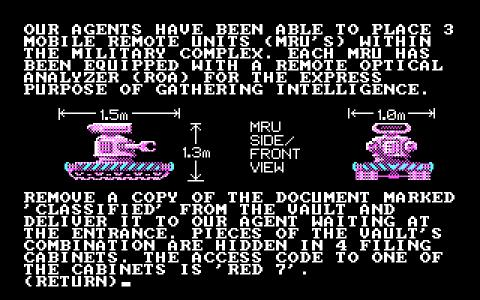 Well, I guess what the developers of this game envisioned as the future had quite a bit to do with what the future turned out to be. This is an espionage/cracking computers and hacking, set in a sort of puzzle type game, with a hefty dose of adventure, in a classical style. Nonetheless, Hacker 2 - The Doomsday Papers is a pretty cool game, one that asks you to complete all sort of challenges to crack someone's computer. Your abilities make you valuable to the government which employs you and thus, you will be on the side of the law, like a sort of NSA agent, cracking people's computers and being offered quite a few different missions throughout. Nonetheless, the gameplay, effectively, is about logical puzzles, which is great, and also, within Hacker 2 - The Doomsday Papers you get to experience what the mid 80s people thought hacking would become! Yeah, they kind of fell short of the mark, but they did indeed understand how the future will revolve and what cybernetic security will be all about! Play it along with, say, Little Computer People, a more imaginative computer exploring game, yet a very interesting one nonetheless.