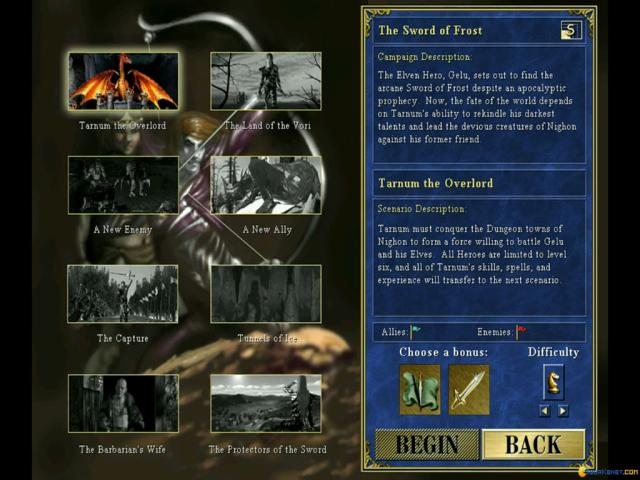This is a sort of spin-off from the legendary Heroes of Might and Magic series of fantasy RPGs and comprises two chapters out of total of eight that were released. The games are all turn-based and feature the adventures of Tarnum, a barbarian who is venturing forth on epic quests for the Ancestors so that he might finally enter paradise and enjoy the peace he has long sought. The entire series is pretty decent and is well worth checking out, but this isn't really the best starting point as it concludes the franchise so if you are interested, head back to Warlords of the Wastelands and work your way up from there. The first of the two episodes here deals with Tarnum's freeing of a group of enslaved swamp dwellers, who he actually once lorded it over himself, in an attempt at redemption, while the second sees him taking on an elf who is searching for a weapon which might destroy the world, but which requires him to seek the aid of the evil denizens of Nighon. If you've played the other games in the franchise, you'll know exactly what to expect here, as the gameplay is the familiar mix of turn-based strategy and light RPG elements. The visuals too are the same as previous episodes but it is the stories which are the main draw here and if you are a veteran of the series, then you'll want to check these two final instalments to find out how it all goes. There's nothing particularly outstanding about the games but these are probably the best in the series and there is a lot of fun to be had here. The difficulty is deliberately quite low while the running time is also short as the series was designed to get casual gamers into Might and Magic, so while this is less than a must play for the average gamer, if you're a fan, you need to play this. If not, do yourself a favour and go back to the start as you're in for a fun time.