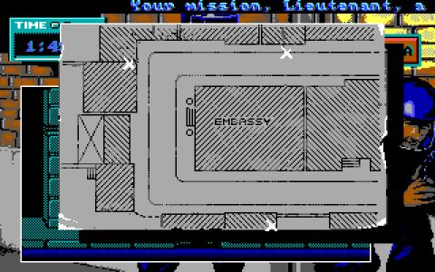 It's a first person action shooter which has strategic elements sprinkled all over it. The plot in the game is that your character is running an anti-terrorist group who has been given the mission to rescue the US embassy officials who have been taken as hostage in the embassy building by some highly trained and equipped terrorists. You will start off by first placing your men and snipers strategically around the embassy to cover all the important positions such as exit points, doors and windows. Running and ducking is the ability that your men can use in the mission along with the shooting that they can do to kill the terrorists. The terrorists will be appearing at different positions randomly and you will have to be good in the placements of your men so that you can take them silently without alarming the others. You will slowly progress to the main building where there are three storeys and then you will rescue the hostages. The game is very good with the EGA graphics and the diverse level designs. The action sequences are supported by simple and smooth animations and the A1 is quite tough. It's not what you call top notch gaming action but is better than games like Capone.