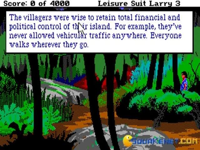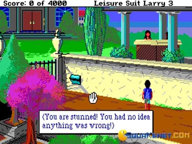 I don't know if Larry has got love on his mind, at least not the kind of love that romantics have in mind, most of the time, but well, I guess Larry, along with Hugh Hefner, with Al Lowe and Lula should be inducted in a club, for ageing ladies and gentlemen that have aided in the fight of the sexual revolution! Because Larry certainly was sleek and manly in games where such themes were generally treated too much in passing, not as a central theme, but more of a way to help the main game sell. Nope, Leisure Suit Larry 3, and for that matter the entire series is all about sexy times, generally with women out of his league. Of, and he works hard, cute little Larry, he does his best to get some him time with girls that wouldn't give him the time of day! Graphically, our little bawdy adventure had graduated to more cartoonish graphics, which is good, as this is the way we all remember the game series. What else should I tell you, Leisure Suit Larry 3 is a classic, there's loads of digital babes to see and loads of funny dialogues, the kind of funny that is even funnier today that it's aged, and cute! Try it!