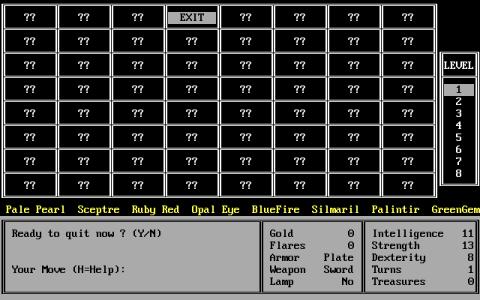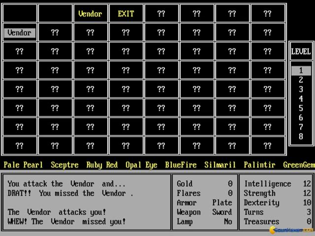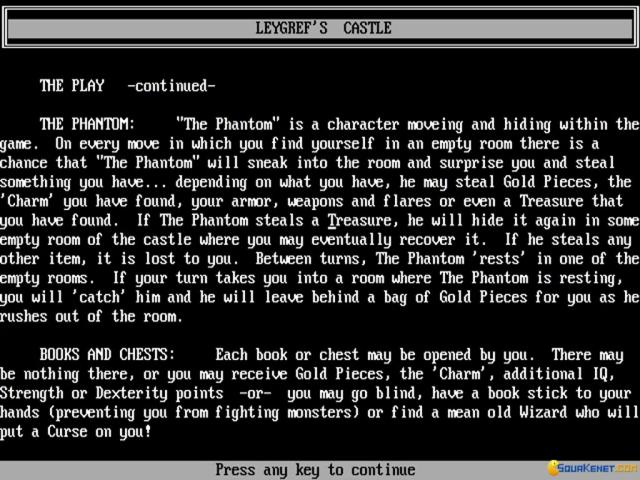 I guess Leygref's Castle was designed more as an experiment in design, and in that Rogue like principle that using some bits and pieces of content that is generated randomly can be actually better than having everything produced by hand. Well, that was the principle, but in reality, this game, as sprawling as it is, is also pretty lacking in detail, originality and other such staples of design that could have made it more than just an experiment, but, actually, a game you want to really, really play. No, what it is, is a roguelike of great proportions that is pretty much the same everywhere. So, all things considered, while it sure is big and sprawling, the fact that it manages to have distinct bits is just boring. Yeah, you always get that feel that maybe the next room will have something more interesting to offer, but each and every time your hunches are demonstrated to be wrong. And so, while you might put up with a few rooms, you soon lose interest. Not that Leygref's Castle doesn't have some foes and some loot, no it does, but in a good Roguelike, say, NetHack, there is some level of human input, which makes your sessions much more fun. Leygref's Castle is just a game to tick away for the ambition it might have had, but experience wise, it's bland.