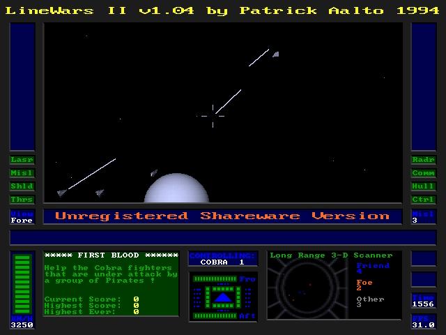 Those in search of a sci-fi experience like Wing Commander or Freelancer would be well advised to check out this neat little space flight sim that mixes enjoyable blasting action with a bit of exploration. The background informs players that they have been sent to a remote outpost which is supposedly far from the front lines of action. However, that wouldn't make for a very exciting game so it isn't very long before waves of asteroids start heading towards the base, and which are closely followed by pirate ships out to plunder and destroy. Throw in a few escort missions and you have all the makings of a fine slice of sci-fi fun, and there is even a veteran cyborg pilot who has been resigned to the scrap heap to help you out. The game plays out in similar fashion to the aforementioned classics, also resembling the original Elite, with a 3D first person perspective for the flying action. The actual flight dynamics and ship handling are extremely well done and give a good sense of being in command of a space fighter while the graphics are pretty decent considering the game's origins. They are nicely detailed and everything moves along at a good pace to keep the action exciting. There is an emphasis on exploration and hunting down your foes rather than out-and-out dogfighting, which makes for some tense missions which really keep you on your toes and which give a slightly different feel to the game. Line Wars 2 really is a great little combat sim that is well worth digging out for those in search of some sci-fi action. The original Line Wars is also pretty good, so check that out too.