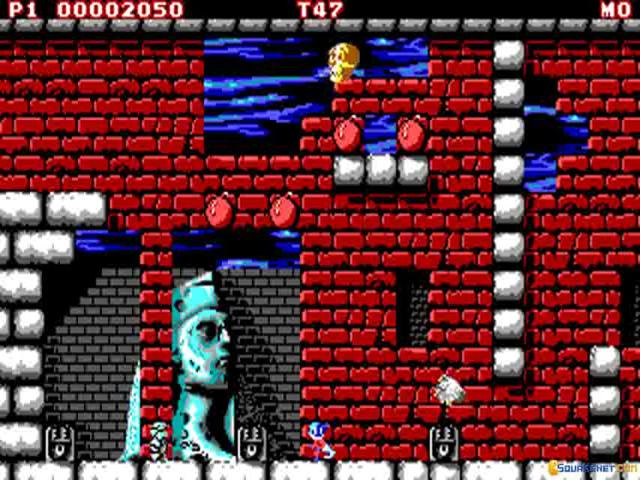 Man, I used to play this game when I was a kid all day long. This is a really fun sequel to the massively popular BombJack. As in the last game, you have to jump from platform to platform and pick up the bombs that were planted in the level. You have to pick up all of the bombs to get out of the levels. You can use those bombs to destroy your enemies, which are really various. Mighty Bomb Jack introduces chest which have bonuses or awards for our Jack. You can't be too greedy though! If you have sticky fingers, you'll get sent to the Torture Room, where the only way to escape without losing a life is to complete a number of jumps, which are counted down on the screen. So don't be greedy! Or just practice those jumps.. ;) The game is graphically enhanced from the original, but not greatly so. The sound's also relatively of the same quality. When all is said and done, we still have a very fun and interesting platform game. But, I would agree with some people who say that there is nothing as good as the original.. Anyways , great job, Jack!