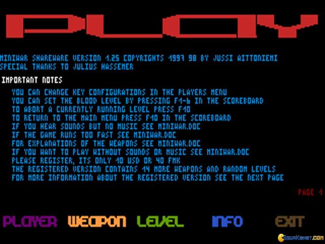 Back when I was in school there was a real craze based on playing Scorched Earth. This was a multiplayer precursor of Worms style games and, it sure had a very edgy... competitive edge! Thus, in Miniwar you really get an awesome experience, the kind that is really hard to find in any of those modern multiplayer games. Because it's two people against eachother only, and, so it can get very personal, very fast! Unfortuntaly, Miniwar is an acquired taste kind of game, quite Spartan in presentation; you only get a back background and the trajectories of the pellets, so, you have to be very cautious with what you ask of this game, it doesn't have too much to offer. But, if you find the premise interesting, you can bet that you'll have some (dumb, true enough!) fun with it! Anyway, expect a Spartan game, a simple mechanic of gameplay and lots of fun, granted, if you have a friend interested in old timey arcade styled games, with the twist that it almost feels like a strategy or rather, like a wargame, in the minimalist of form possible.