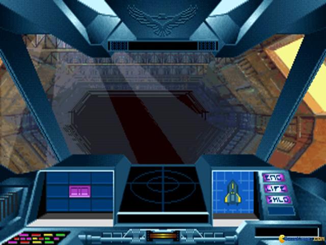 In this game you're going to play the role of a tank pilot in a really word futuristic world. The pink skies are the home of archaeopteryx type birds while the soil is populated by mechanic “beasts†such as the one that you pilot, tanks that can shoot energy beams and a few other mostly static structures you may be tasked with leveling down. The game, in a setting with more green and with more blue for the sky could have easily stood for a tank battle type game, with the view stuck to the cockpit and with the enemies and decors being so simple 3D meshed thingies that they could have been anything! Yap, it's that kind of ultra simple visual game, which can barely display more than a few colors at a time and also can display 3D objects that are rarely more complicated than regular cube structures. But I love that very beginning, struggling type of graphics, where every line displayed is a struggle won! You will find the same overly simplistic make up of the world in Havoc though the game is a bit more refined in terms of the amount of polygons it can display, as it was released in 95, when Pentium 2 was top of the line processing wise and Voodoo graphic cards were all the rage!
