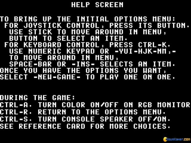 The game here is a mini basketball challenger kind of game, where you only have two players playing on just one half of a basketball field and where your main goal is to go past your adversary and shoot a hoop. The game is, for its age, pretty well done, featuring two players that were pretty well known in the late 60s. Don't think that would matter today, but, at any rate, at close scrutiny this is yet another of those DOS games that are as simple as possible. What it has for itself, though, is good controls, as well as simple controls; you have to learn what do at each stage of the game, learn the buttons to press and learn to instinctively tell when your opponent is going to do some move or the other. That way you can get a lot more done and earn even more points. The sound is pretty horrific though, and, the graphics, while functional, and, animation wise pretty varied, are nevertheless abhorrent to look at, with that magenta color clash of the era in full view. But, well, some will actually like it for exactly that kind of oldschool look! Alternatively, see the later One on One with Jordan and Bird which ups the graphical ante quite a bit.
