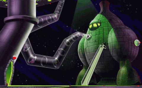 A particularly obscure game from the 1990s, Orion Burger is actually an intriguing little game that manages to combine an inventive storyline, unusual graphics and a high level of challenge to create something that is worth tracking down. The rather bizarre plot revolves around a plucky pet shop assistant and his attempts to save the universe from the evil machinations of an intergalactic fast food chain, and the game is almost worth playing solely to watch the story play out, it's that unusual. The puzzles are based around both an inventory system and on conversations, and while the conversation-based ones are easy enough to solve, the inventory ones are much more difficult, verging on the frustrating fairly often, as there is potentially a lot of repetition if you get them wrong. Visually, the game is actually very impressive for its age, with crisp, clean, cartoon-style graphics which feature some really imaginative environments and characters. Sound too is generally good, with some excellent acting, although the main character's voice is perhaps a little unexpected based on his appearance. Although nothing outstanding, and with more than its fair share of frustrations, Orion Burger is definitely one for fans of obscure games and adventures like the Monkey Island series and is worth investigating.