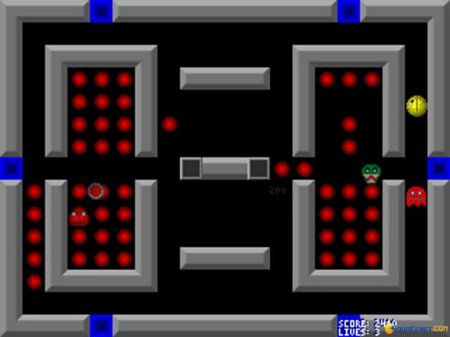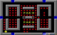 Pako is a long lost cousin (!) of Pac Man, and this is its game; Pako is a small yellow blow, always hungry, always looking for the red pellets and, always chased by ghosts, with only short amounts of time when he can breathe easy, knowing that he's not the prey! Yep, it's Pac Man alright, but the choices to color the maze with solid gray lines, like it were the lines of a Windows 3.1 application, and also, fact that there are not just 2 but 6 warp slots which once entered take you to the opposing portion of the screen, just gives this game an eerily different built and feel compared to that classic Pac Man maze. Controls and movement wise, Pako is every inch as responsive and as easy to control as Pac Man, and the ever increasing difficulty of each new start, as the speed increases and the power blobs don't last as long, makes this a very fun game to sink into and play. So, if you wanted a clone/remix/variation of Pac Man, this can sure fill the shoes, and it does so with a rather eerie presentation; but then again, that might just be me!