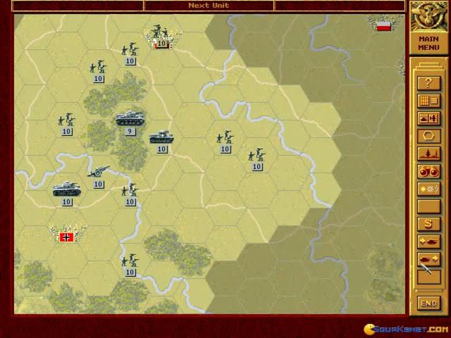 If you've played lesser military sims like Operation Combat, White Death and the like and found them lacking in strategy thrills, then it's time to try out one of the best in the genre. Panzer General is a fantastic game that combines several innovations alongside some solid wargaming to create a first class experience. In principal the game is similar to other hex-based sims, with players taking part in a series of missions representing key moments from WWII, while carrying out such as activities as moving, engaging in combat, supplying. There are of course a number of units available, each of which is strong against certain enemy units but weak against others, so careful consideration of their use is a must. The game offers two main choices in terms of gameplay: take part in single missions against either the computer or another human and which allows you to play as either the Axis or the Allies or to try out your skills in a full blown campaign. Here, you take the role of a German general, something which was quite striking for the time, but this is not the only interesting feature on display here. In another novel twist, units are able to gain experience points and prestige if they survive battles, allowing them to level up in RPG-style, while success also offers the player the chance to access new units and different scenarios. Panzer General really is a top notch strategy experience and is a must play for both newcomers and genre fans alike. There is a huge amount of units, air, land and sea, which provides plenty of tactical elements and which encourages different play-styles. The missions are absorbing, varied and challenging, particularly in the campaign, while graphics are simple but highly effective. Basically, if you have any interest in historical strategy games, you need to play this. Check out the similarly themed Fantasy General, or Panzer General 2 and Panzer General 3 for more high quality action.