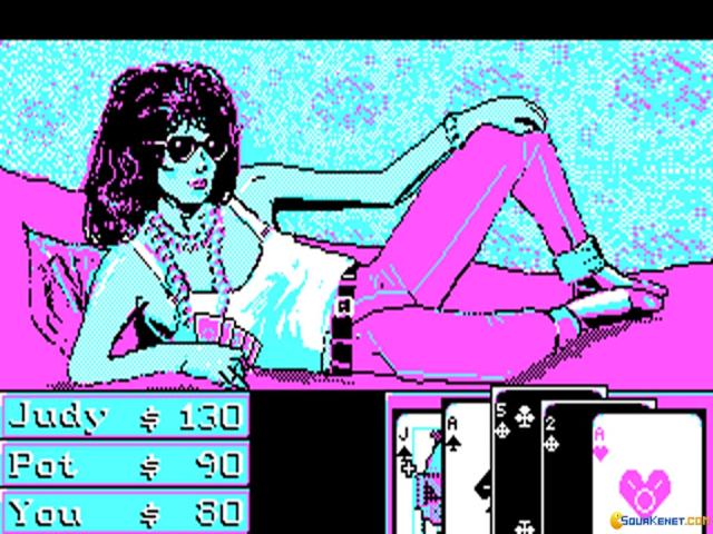 Although this game is a clear improvements compared to Artworx Strip Poker, still it's quite far from a good standard for late 80s Dos games. Indeed, the graphics are at least a couple of years back and it can be easy comparable to the second Artworx Strip Poker game. The game develops as a classic poker challenge, you'll be selecting one of the two available models (does not seem to be present any addon disk to add models) and you'll try to win their clothes in a classic strip poker mode. The AI is not that smart, neither so easy to be honest, however it does not count that much in this kind of games. A very good feature is the presence of the mouse, that will make your play more comfortable. Also remarkable (in negative indeed) is the absolute absence of any voice or sound effects or music, so, expect to be playing in a complete mute mode. The interaction will be present through some text on the top part of the screen. Overall the evaluation cannot be that positive, above all for the graphics quality (you'll remind Astrotit arcade game).