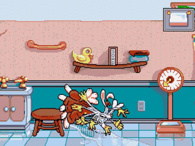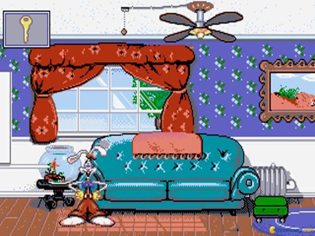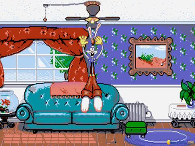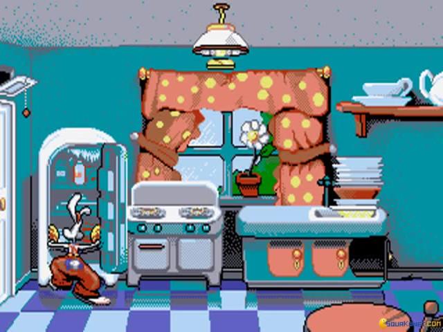 Roger Rabbit had his five minutes of fame back in the late eighties, with the release of the massively popular and highly acclaimed animated /live action movie. When any film gets the kind of success this one did, it's fairly predictable that a game tie-in will follow and while this one isn't related directly to the movie, it does take the character of Roger and bring him to the small screen. However, it does so with little in the way of imagination or fun and the result is a fairly tedious and uninteresting game which is lacking in humour or fun. The premise here is that Roger, the talking rabbit if you're unfamiliar with the character, is stuck in a house and must recapture Baby Herman before Mommy returns home. Gameplay takes the form of a series of single screens, where Roger must make use of various objects lying around each room to solve puzzles and thus open up the door to the next room. These puzzles require you to pull, push, jump and kick the objects so that they interact with other items in the room and will see you swinging on overhead fans, playing tricks on goldfish and other such activities. Everything is played out in typical cartoon style, and while the visuals are certainly bright and appealing in the most appropriate way, the gameplay lacks much in the way of long term appeal. Things start out reasonably well and it's quite fun experimenting with things to find out what happens but it soon goes wrong, with a slow moving main character that is frustrating to move and which reduces the fun factor considerably. This isn't a terrible game and if you're a fan of the character, it's worth a look but don't expect anything earth shattering.