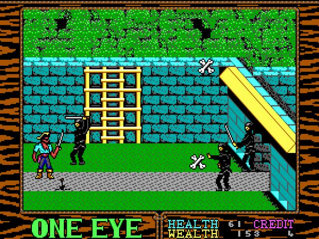 Skull & Crossbones is a combination of action with strategy in the style of Ships and Forts, but, as you must have guessed, with pirates! There are however levels in there that ask you to duel heavy duty knights, others where you'll sword battle on the decks of ships and others were you will swing your sword in Japanese styled dojo spaces. All of these fights take place from a third person, sidescroller perspective, and at times you can move only left and right, while at others you can also move up and down too (on the ship deck, for instance). It's very simple, almost brawler kind of action levels, but wilding your sword also takes a bit of strategizing too, so don't expect the world's lest complicated brawler fighter, this one will take some smart maneuvering too. All in all, though, Skull & Crossbones is very well done, very well polished, and, all in all, it is a cool sword play game. It's not much of a looker though, so expect no more than alright 8bit graphics, but they sure work alright. Else, download Primal Rage too, another brawler action fighter game.