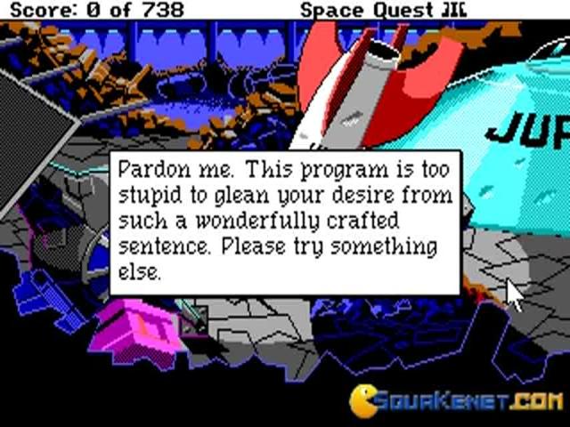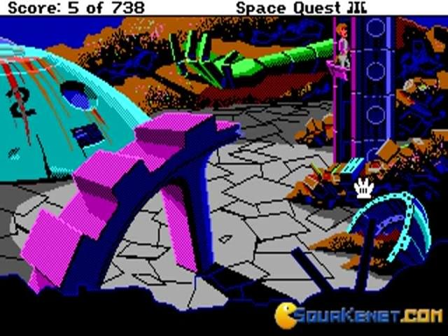 This game concludes the Space (old-school, initial) Quest saga and, while not tying all the loose ends, it kind of cleans the slate, allowing you to sigh with relief and to look back with kind of a satisfied grin on your face. What the protagonist of this game is, is a sort of space Karl Pilkington, a happy go lucky, maybe a simpleton, maybe a mad genius in disguise, or maybe just a bit of a troll that likes to throw stones in the river that an army of intellectuals cannot really pick up. So, ultimately, Space Quest 3 - the Pirates of Pestulon is an absolutely fantastic adventure. I like not to think of it as being in space or about aliens, but more of a game that tries to disguise the fact that it takes and looks at social classes, make fun of them, expose their weaknesses and kind of show how two faced we can be. But, certainly that can be a pretty wayward way of looking at this game, because you can just experience it as an adventure, focused on the puzzles, on the dialogues and so on. The next three games, 4, 5, and 6 will kind of go towards being more self satisfied and smug, I feel, but with 3 and the previous two I feel that both playfulness as well as the unassuming stories worked as a charm. Anyway, feel free to try them all, they're absolutely delightful to play even if aggravating at times, for all sort of petty reasons!