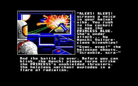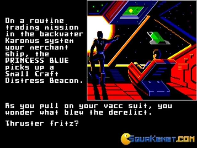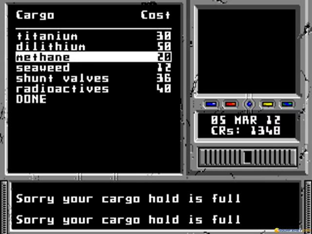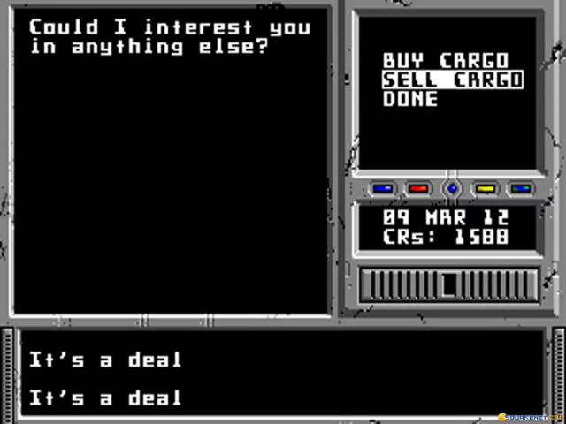 Space Rogue is very complete game where you will play elements of role, trading, space simulation and adventure. Let's start by the base idea of the game. You're a merchant commanding a spaceship and you will have to trade stuff around different planets. So, you purchase some good at a price on a planet and you must try to sell at a better price in a different planet. Then, when you approach the planet itself you will have to pilot your spaceship in order to land and be able to run those business. You can even talk to other characters and get precious information about what is going on in this dimension. An interesting stuff is the possibility to engage in combat when you are nearby another spaceship. You decide to go rogue and pirate the spaceship (not before a spaceship battle that will test your sim-flying ability) or you let it be and do your honest trades. Depending on your choices your reputation will change, of course! Then, you can even enter in other dimensions by crossing some sort of wormhole portals. Also here, watch out and be a good pilot. Taking in consideration this game was developed in 80s, we must say it's pure gold as it will be still able to entertain you!