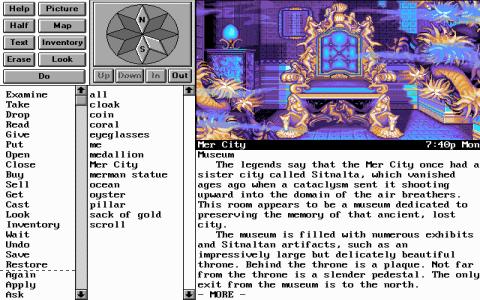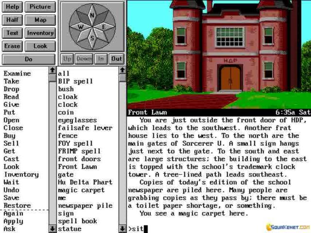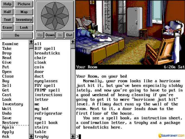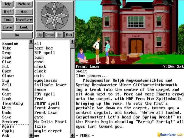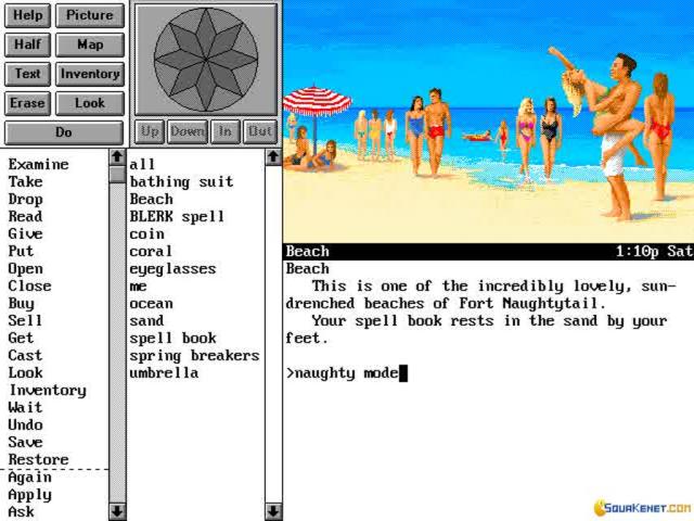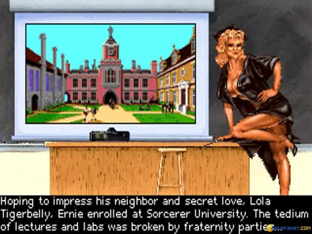 This is the third game in a text based adventure game. You play as Ernie Eaglebeak, a student very much like Harry Potter, concerned with the craft and art of spell casting and the future of it would eventually provide as a wizard. But our Eaglebeak is no Harry, and he has to apply himself to progress his studies and to become masterful in the arts of the arcane. When not down with studying, the protagonist will find himself in a lot of unfortunate and challenging situations, where the magic learned to that point will need to be applied for the game to progress. So, without a question you will be faced with a lot of situations where you will need to think how to proceed, what's the best choice to make and so on. Although Spellcasting 301 introduced graphics and sound capabilities in the text adventure mix, the game will hardly be playable to an audience that no longer has the patience for adventure games. Make no mistake however, this is no Zork, you can pretty much do without this game, a fact that even the creator, Steve Meretzky seemed to understand, leading him to bring a bit of sex-appeal. Which, even if have little to do with the story might entice you to give the game a try.