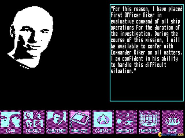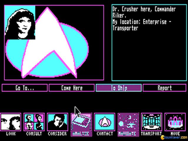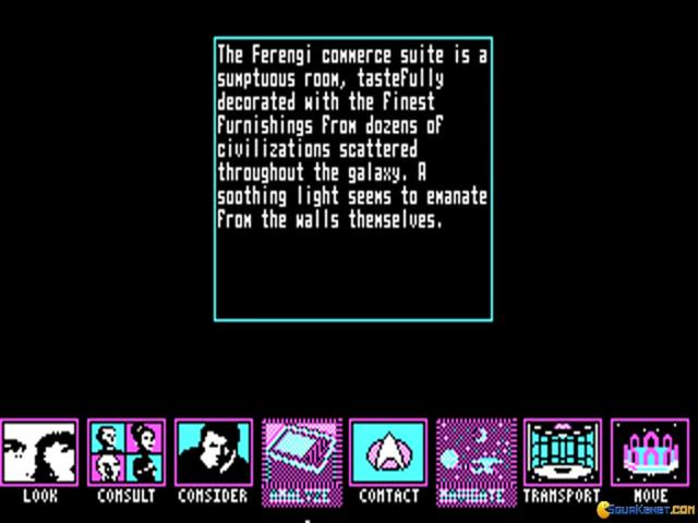 Star Trek TNG: The Transinium Challenge is a great adventure game, quite possibly the best, based on the TNG cast, if not the entire series. What makes it so special? Well, for starters it features a story that was very interesting to explore in the TV series as well, the Final Unity plot-line. It's about the beginning of life and that which binds all humans as well as alien species. So, with that in mind Star Trek TNG: The Transinium Challenge is a really exquisite game, one that will definitely offer you a lot of enjoyment and a lot of satisfaction. It's got beautiful graphics, very representative of the cast of the TV show and also, very well put together. Also, the dialogues, part of them are spoken, taken directly from the TV show, with just enough quality loss to give them that DOS patina that makes the game even more enjoyable. Anyway, while puzzle is strong in this one, there is also quite a bit of action, or puzzles that are very action oriented, if you will, along with great storytelling and also, sets that recreate the Enterprise (and its computational devices!) very well. Great, absolutely great! Do have a walkthrough around just so you don't get stuck and give it up, that would be a shame!