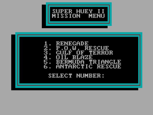 Super Huey 2 does little to shed the minimalist flight game mantra that it's prequel had also worn. Thus, Super Huey 2 is just as simple, yet playable, a helicopter arcade game, with elements that give it a simulation allure. At the very least, it runs on the proven graphics engine of its older brother, which were pretty well suited for the kinds of missions that this game here, too, offers you. There are escort missions (the hardest!), there are shooting missions, and also there are quite a few arcade missions, with enemies coming from all sides, without much concern for realism. Hopefully, as the game no longer has its instructions module attached (it came delivered on floppies and this one was a little meatier than its older brother) the controls are just the same, basic ones that were used by the first Super Huey, but it would have been nice to have retained its instructional material. Nonetheless, for a keyboard controlled helicopter game, Super Huey 2 does a great job at being very easy to learn, so download it. It's not a super serious game, but it sure doesn't let you down either, fun wise.
