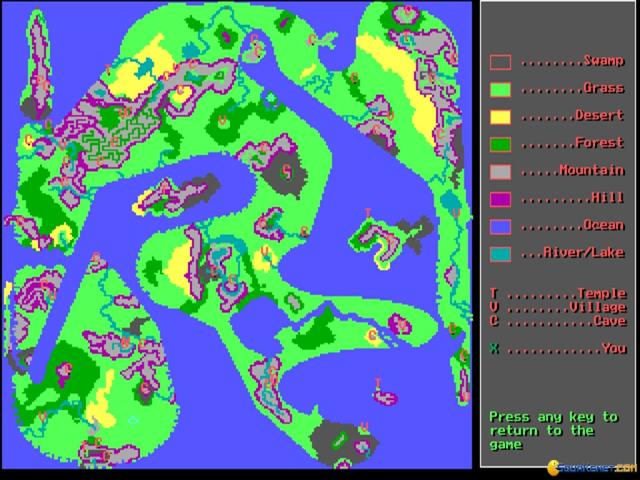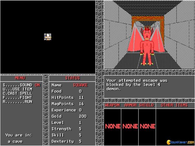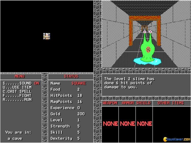 This is another little oddity, a charming enough RPG that hails from the days when all you needed to make a game was an idea, a bit of programming knowledge and plenty of patience. In this case, it was the amateur game maker Erik Badger who produced Sword Quest 2 and although it is not going to go down in the annals of gaming history, it certainly stands as a neat example of the artistry of the back room coder. The game is a follow up to Badger's previous Sword Quest game and continues in a similar vein, featuring an epic quest for the titular talisman. This is done in fairly typical old-school RPG style, and which involves exploring, fighting, talking and using magic to help you on your way. There is actually a surprising amount of stuff to do here, with plenty of things to discover and beasties to kill, while the detail and depth are pleasing, given the game's simple origins. The graphics are very basic, with minimal animation and detail, and with blocky sprites that are basic even for the period from which this dates. However, gameplay is actually rather fun, and although Sword Quest 2 can't compare favourably with other classic RPGs like Legend of Zelda, it is interesting curiosity for gaming historians.