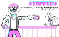 Tapper is a very simple, yet very addictive game (like Donkey Kong, another game from that era) that depicts the job of a bartender perfectly. You are the bartender and you have to serve all your customers with beer and collect the mugs when they are finished drinking. The thing is, there are four bars and a bunch of customers comming and you have to be quick enough to manouver from table to table, leaving nobody left out because if you let the customers waiting for too long, it's gonna be you that's kicked out, and you lose a life. Also, if a mug is dropped to the floor, you also lose a life. Not as easy as you thought, eh? This is in fact a game of reflexes, speed and attention, because you have very little time to react and have to be as quick as possible. The game can go on for hours on end and I had a blast playing it. The graphics are really fantastic for such an old game, although today we would think of it as very outdated. So, get yourself some kind of DOS emulator and hook this game up for tons of fun. Think quick!