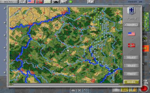 The Ardennes Offensive manages a nice feat of wrapping the tabletop game with a ll the bells and whistles that make it a very modern and playable game to this day. You get a nicely drawn, well color coded map, the unit representations in a very cardboard like appearance and also, you get the opportunity to play on various levels of difficulty against the AI or against friends, via hot seat mode. The game can rapidly turn very difficult, against the AI or against the computer, especially if you play the harder settings or if you play against a competent human f(r)iend! In terms of options and of ease of access, the game is on the more lenient, straightforward side, as you can control all your troops and squads by mouse only and can get useful tooltips to help you out. Other than that it's just personal investment really, play safe or go full guns blazing, the computer will do a good job at deterring your plans, so you have to think your moves carefully. This is the kind of game that can be as casual or as hardcore as you want it to be, so I do recommend it to tabletop fans, regardless if they're invested in the historical retelling or not. Alternatively, see The Ardennes Offensive 2 for an even more modern graphical interface.