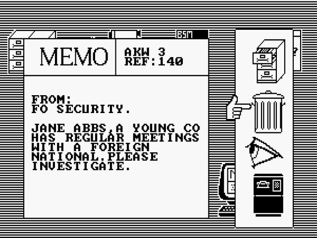 This is a mighty serious adventure game, whose main story revolves around a political plot, which, as you'll find out as you explore the game, is quite the thriller. But, while the story will entice you, the overall aspect of the game might not be everyone's cup of coffee. Because The Fourth Protocol is a game that oozes personality, but a personality through minimalist graphics, and an overtly simplistic world. It's because this game was released in 85, when most su8ch games were delivered strictly via text based builds, you can't judge this one too harshly. After all, the game is doing a great job of its own works. And, so, you will find that it offers you a lot of great moments, just not graphically. At times you'll also wish you could play it with a mouse, but well, tough luck. Still, a story this good, and a story this serious is rare, and so worth putting up with the problematic graphical look. Plus, some might enjoy a minimalist game, graphically, because it was designed for machines that couldn't handle more, rather than being some sort of hipster move! So pick it up, and have Democracy around, if you want to exercise your political prowess form a more God like position.