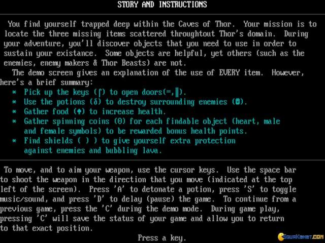 The Thor Trilogy contains three top down exploration heavy, action games, with Thor, delivered, all of them, in cool looking ASCII. The games are Caves of Thor, Realm of Thor, as well as Thor's Revenge. The games, basic as they are, are really well produced, beautifully realized, with the main activity being exploration. Your character, Thor is delivered as no more than a dot on the map, and, as you go on, you auto map the spaces where you've already been. This means that you will know which areas to avoid going into, as well as having a certain drive to see what is hidden in the fog of war. Else, there are loads of enemies to take down, there are loads of secrets to find and also, a cool few items that will help you on your way. Nothing changes too much with any of the games, but, as an idea, the later ones are a little bigger and more sprawling. So, with that in mind, make sure you have this in your collection. Else, a similar game, in build, with cool ASCII graphics as well is Ogre (ASCII), which is also pretty cool an ASCII action game.
