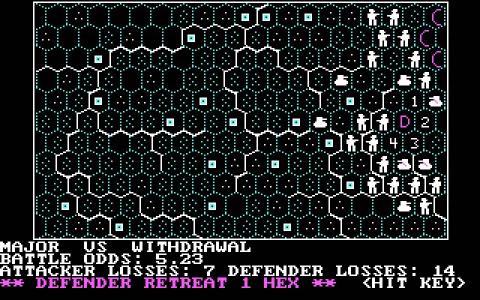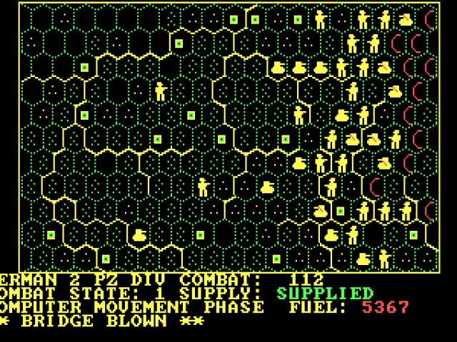 In this game you will be sunk into a conflagration of proportions, conflagration that plays mostly like RISK but has enough novel ideas and new elements to be a proper digital strategy game. Now, you'll have to excuse the game's sparse graphical presentation. Don't forget, this game was released in 82! Then, when you let that sink for a bit, and consider that the game was meant to be ran on the first generation of Intel microprocessors, without no video cards or other aids, you'll understand how it all worked. So, yeah, it's a straightforward game, the kind that will just work, where you have to familiarize yourself with. For instance, the units are represented by a minimalist figure. Thus, tanks, infantry and other units are all no more than a small sprite, and that is pretty easy to get. In fact, the minimalism of the game is very welcomed because it allows you to play the game better, focused on it. However, as you'd expect from a game this old, it's pretty hard to sink into and to learn in detail because it has lots of quirks and it gets old a little too soon. But, if you like highly stylized wargames, it sure can do the trick.