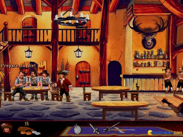 Touche: Adventures of The Fifth Musketeer is an action and adventure game focused on the musketeers, that we've all become accustomed too, mainly through Alexandre Dumas stories and novels and the ripples that these productions have sent through the waves of pop culture. At any rate, what happens is that you, the player find yourself immersed in this pretty cool adventure that is high on humor, also pretty high in classic point and click tropes and also, for all intents and purposes, a great adventure for those that love a simple, cartoony adventure. Nope, this is not a serious retelling of Dumas' stories, this is just a cool, sweet adventure game that offers you lots of puzzles, lots of inane and yet cool dialogue and, overall, a pretty fantastic and absorbing journey. Music and sounds are great too, specifically those of combat and overall, the entire game is pretty satisfying. Download also Legendo's The Three Musketeers, which is also high on musketeers, but not as cartony, yet still highly playable