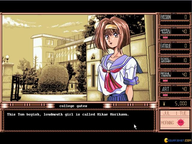 There is one reason why you have to download and play this game. Well, really there are several, but, the main one is because this is the real top bishojo game where you will be able to take decisions and, based on those decisions, having a different ending. Jast came out with this masterpiece in the middle of 90s, changing the way of making the user to interact. Still you will be a young japanese student, but, this time, you will have to decide what to do during your day, and improve the abilities and skills you have. Those excercise will decide your personality (more fashion guy, or more nerds for instance) and you will match with the different girls you will meet along the story progresses. Want to have a relationship with Miss Yumi? well, probably you will have to study hard and follow her suggestions. This aspect will make you reapeat the game may times, and you will enjoy to try to conquer your girl. I tried a lot of times until I can see the athletic body of Chiemi naked... it was a complete worth! So, don't wait anything more, download this gem and enjoy playing it.